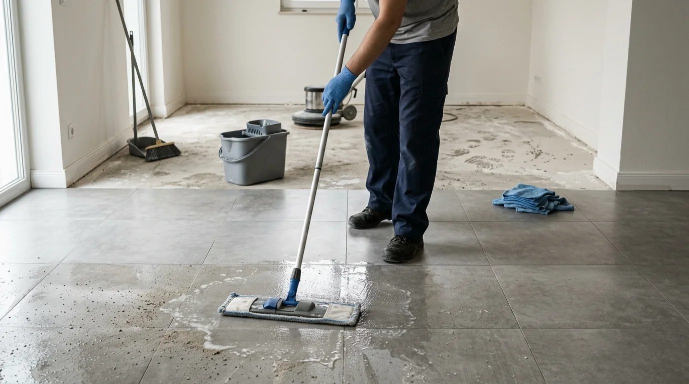 A obra terminou. Os pedreiros foram embora. E aí você olha para o piso e vê: respingo de tinta, resíduo de rejunte, pó de argamassa, pegada de cimento no azulejo. A vontade é pegar um pano molhado e sair esfregando, mas isso quase nunca funciona.